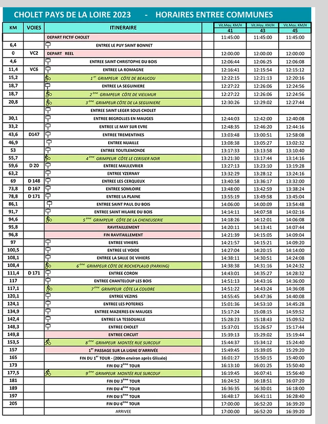 Cholet Pays de La Loire Horaires du parcours VELOOUEST Actu Cyclisme PaysdelaLoire