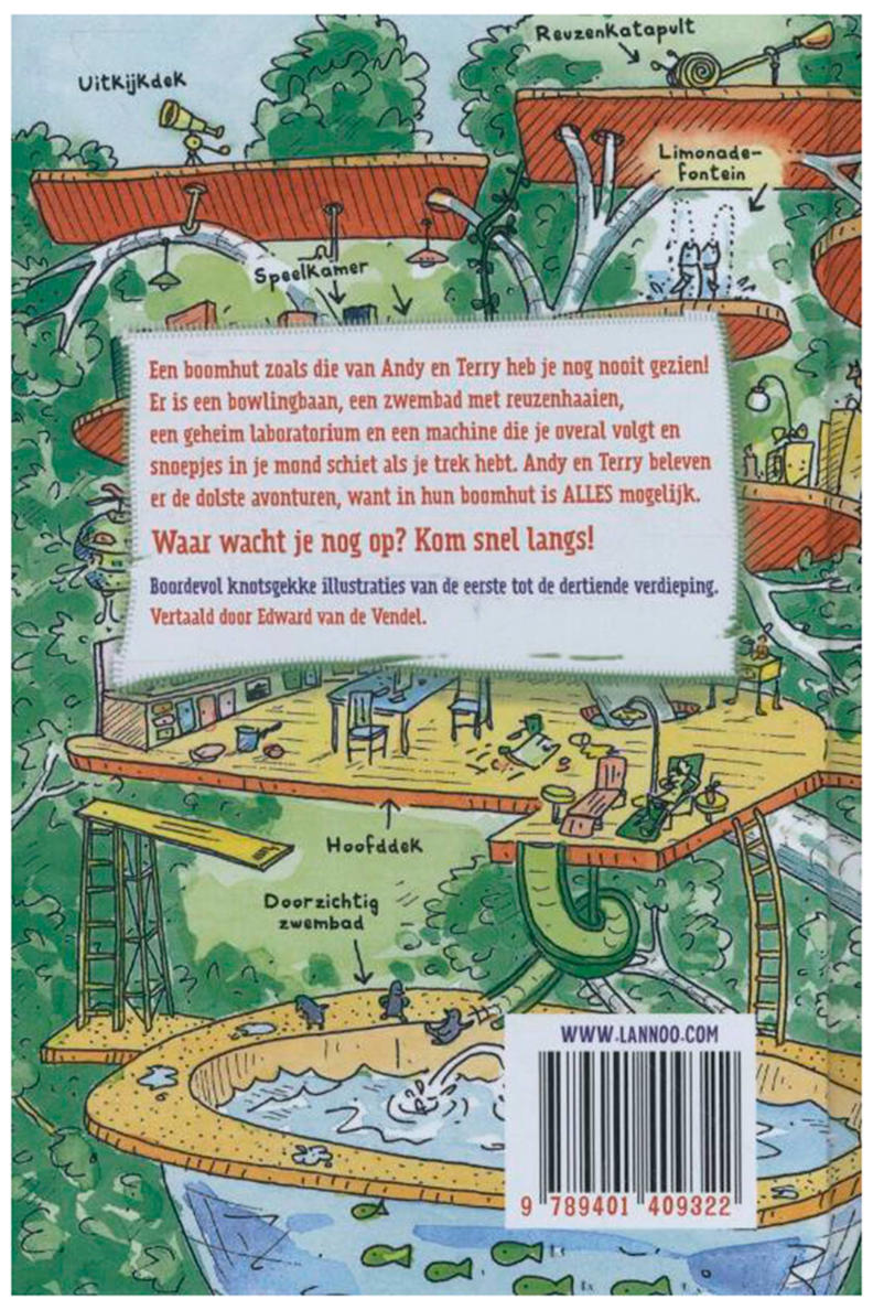 Winnaar Nederlandse Kinderjury 2018 Kom op bezoek bij Andy en Terry in hun waanzinnige nieuwe boomhut van 78 verdiepingen! Ze hebben er 13 verdiepingen bijgebouwd, waaronder een carwash, een combineermachine, een krabbelatorium, een stadion voor ALLE SOORTEN BALSPORTEN, Andyland, Terrystad, een zwaar beveiligde aardappelchipsopslagruimte en een openluchtbioscoop. Dus waar wacht…