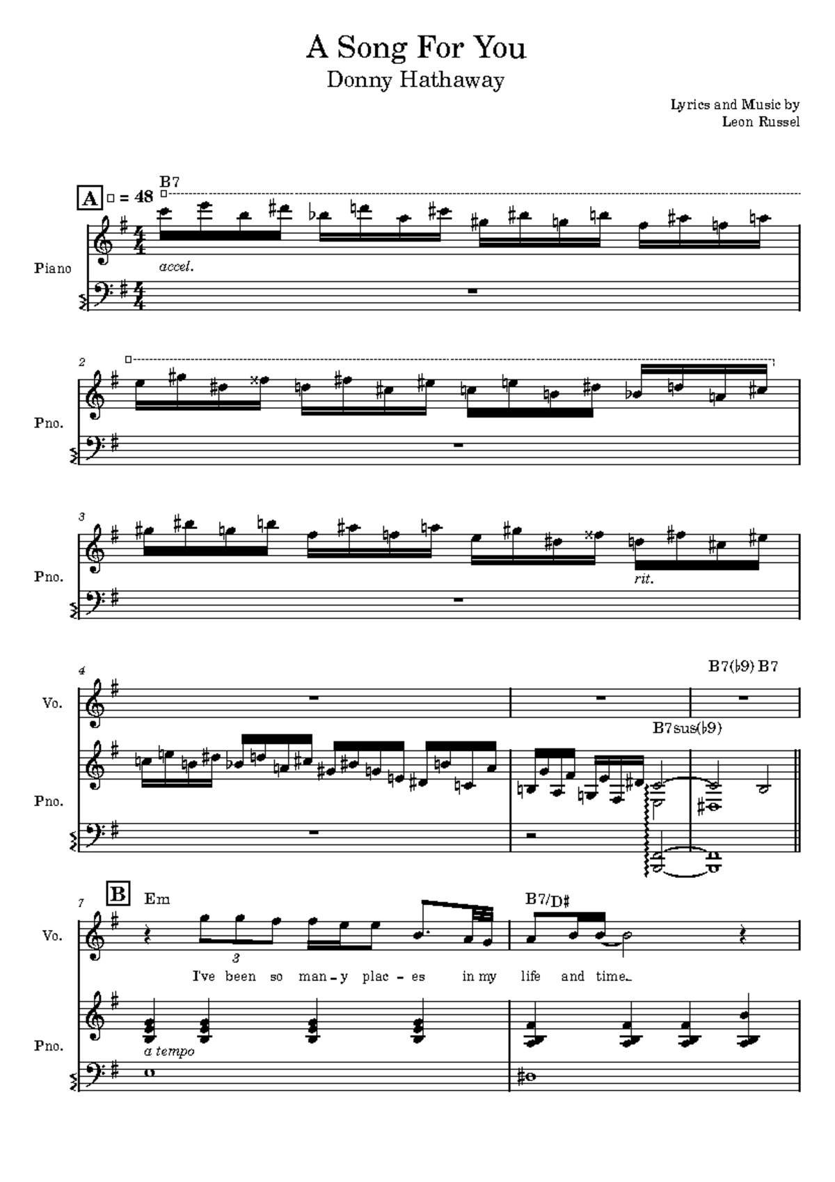 A Song For You (Donny Hathaway) Vocal Sheet Music