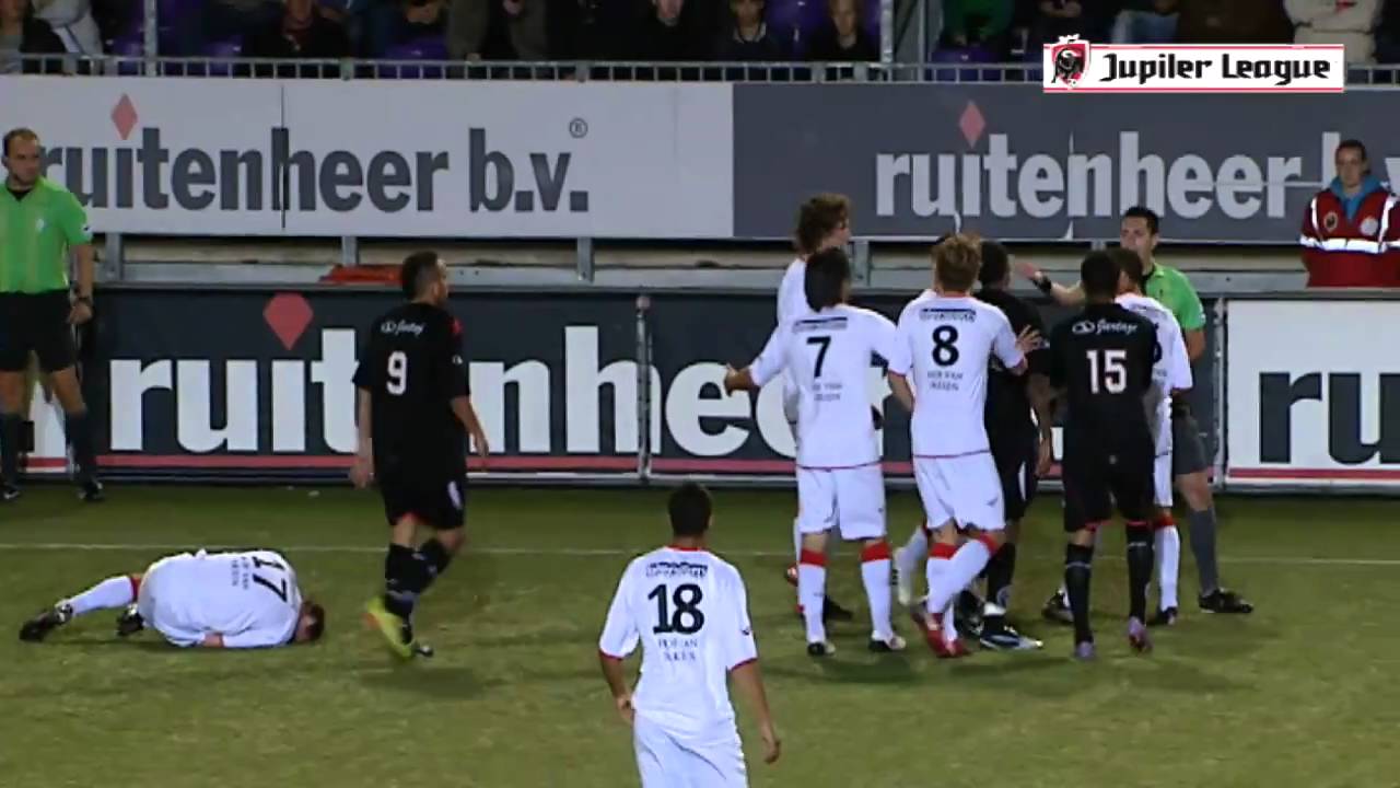 Emmen's Mark Diemers misses with an attempt on goal. 11'. Ball goes out of play for a Almere goal kick. 12'. A throw-in for the away team on the opposite half. 13'. Almere are too eager and fall.