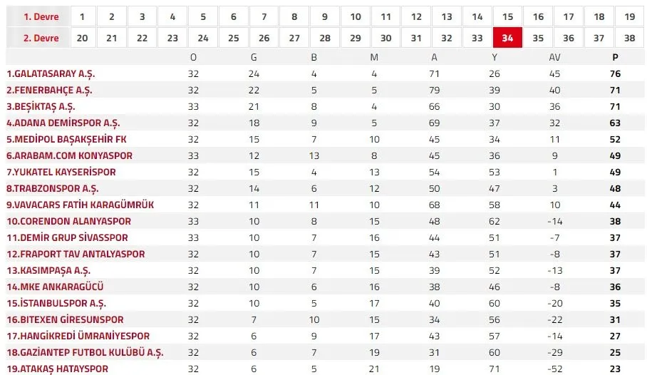 Süper Lig puan durumu 2023 Şampiyonluk yarışında sona geliniyor! Galatasaray ve Fenerbahçe