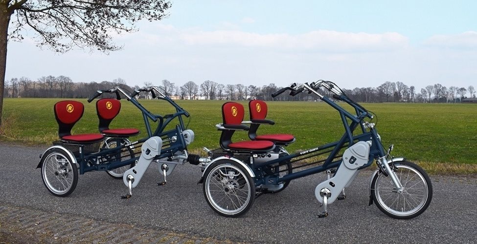 Onze fietsen. Duofietsen. De Fun2Go duofiets van Van Raam is een speciale tandem met drie wielen. Omdat je naast elkaar zit en niet achter elkaar, wordt deze fiets ook wel side-by-side tandem genoemd. Het is ook mogelijk om met meerdere personen te fietsen dankzij de FunTrain duofiets van Van Raam. Fietskeuzehulp. Wil je trapondersteuning? Ja. Nee.
