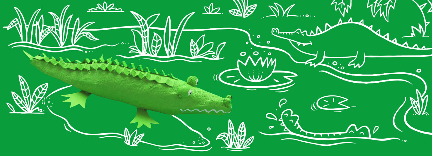 Een lege rol dient als de basis en met reepjes papier en lijm bouw je het lichaam op. Edet keukenpapier is sterk genoeg om te verven, dus knip voeten en stekels uit, verf ze groen en plak ze op de krokodil. Duurt 24 uur (inclusief drogen) Wat heb je nodig: Lege rol keukenpapier. Edet Superior. Restjes karton. Potlood. Lineaal. Schaar. Plakband.