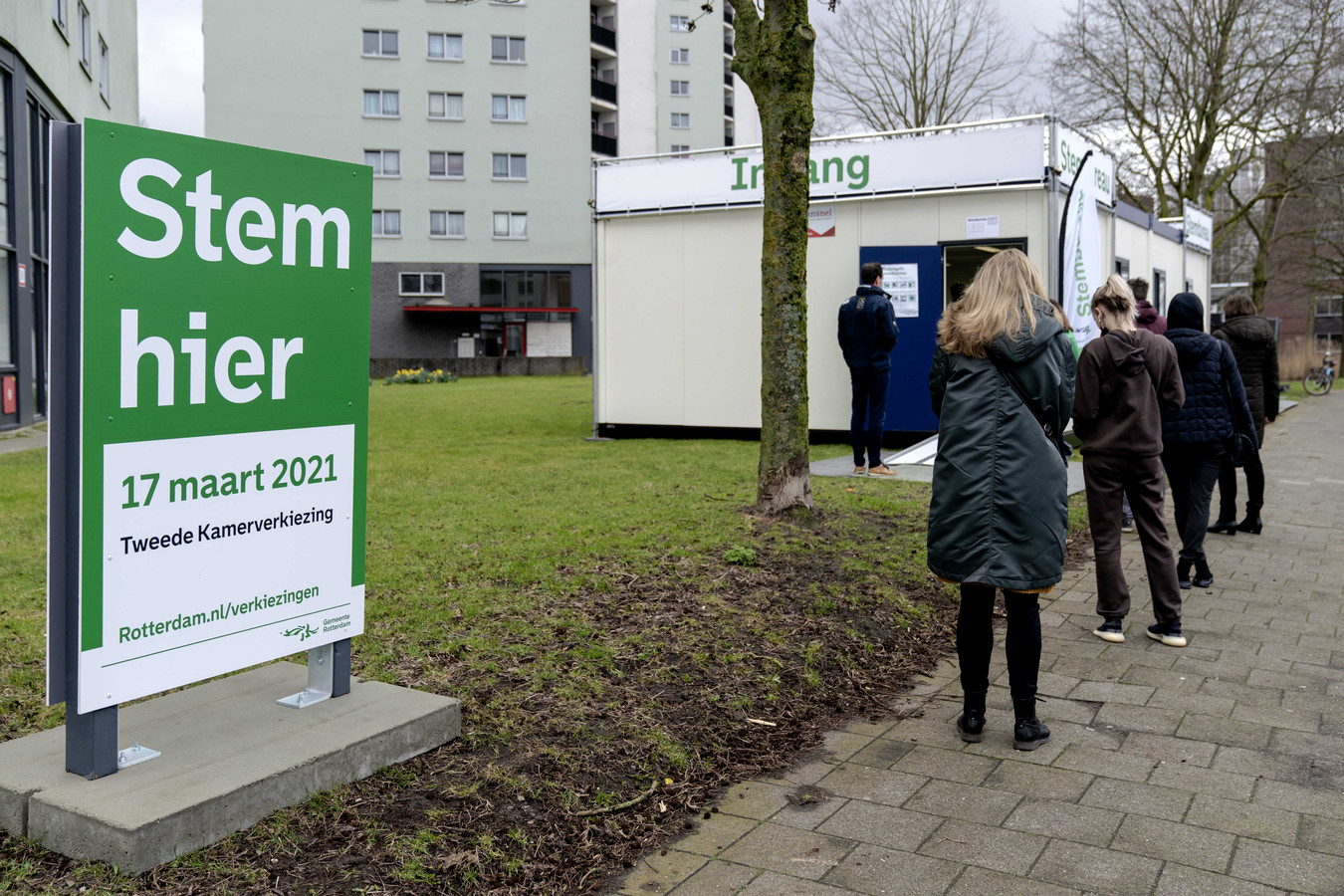 Om 21.00 uur nog in de rij voor het stembureau? Je mag dan tóch nog stemmen Foto AD.nl