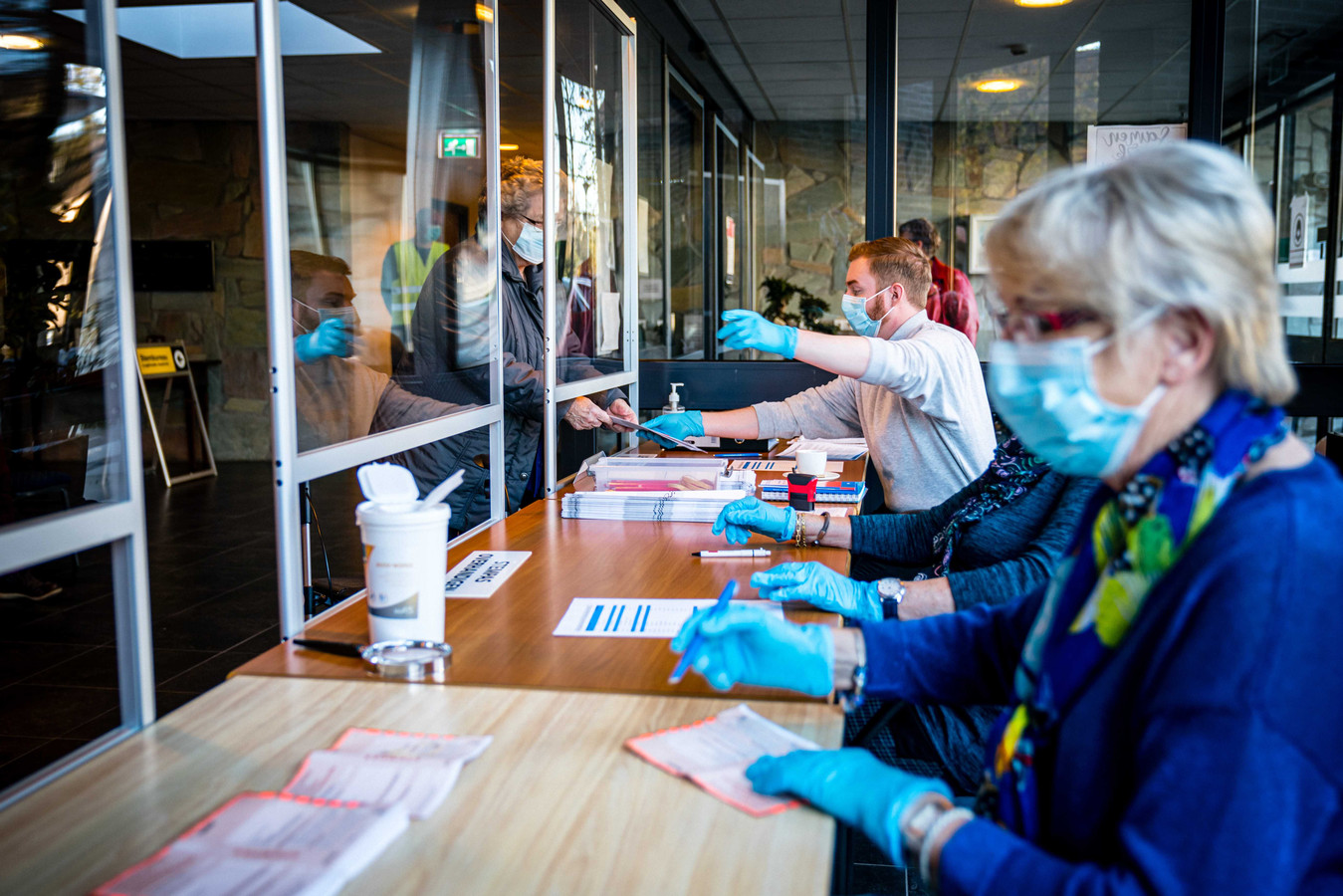 Een dagje op het stembureau wennen aan alle maatregelen, maar de meeste kiezers zijn blij met