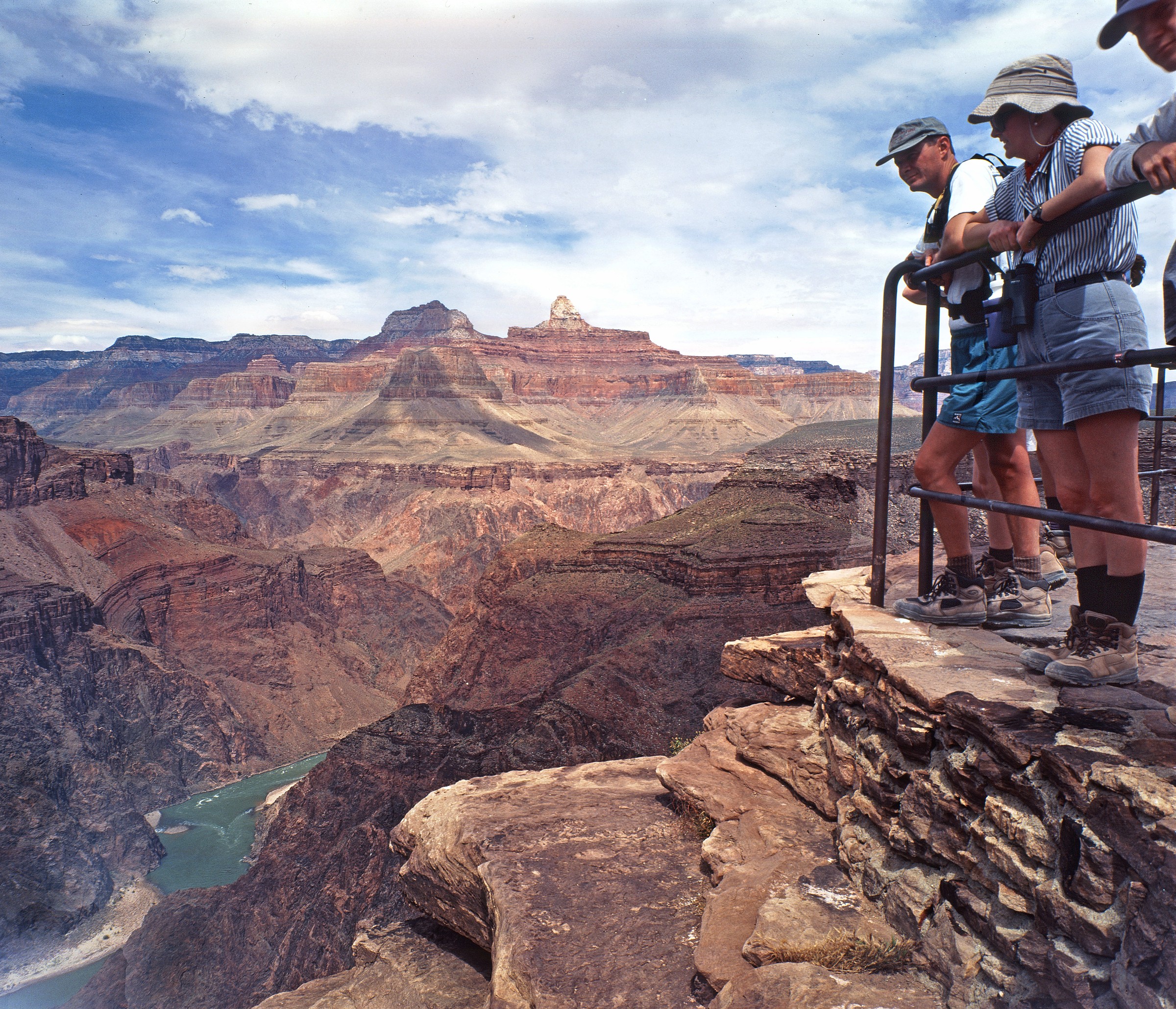 Grand Canyon National Park . Trail Condition: Maintained dirt trail. Steep. Well defined. Some shade on trail, mostly from canyon walls and dependent on time of day. Give uphill. Plateau Point 6 : 12 : 3740 : X : Water available seasonally only. View of the river. NO shade. This hike is