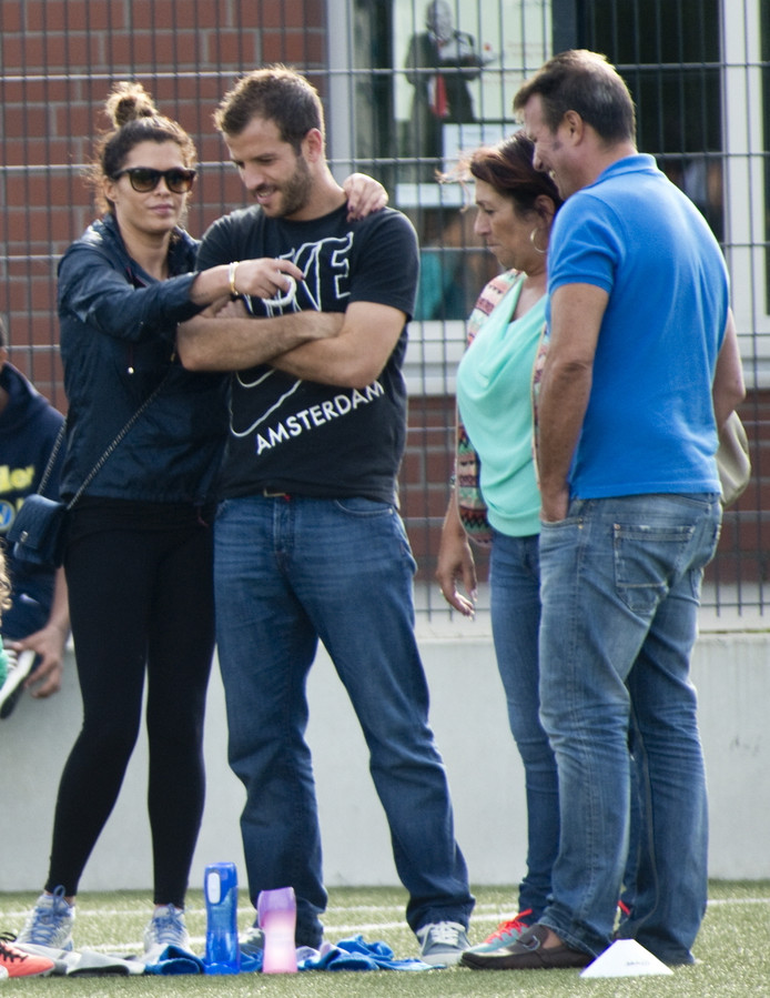 Vriendin Van Der Vaart Van der Vaart en zoontje Damian stralen bij afscheidsduel