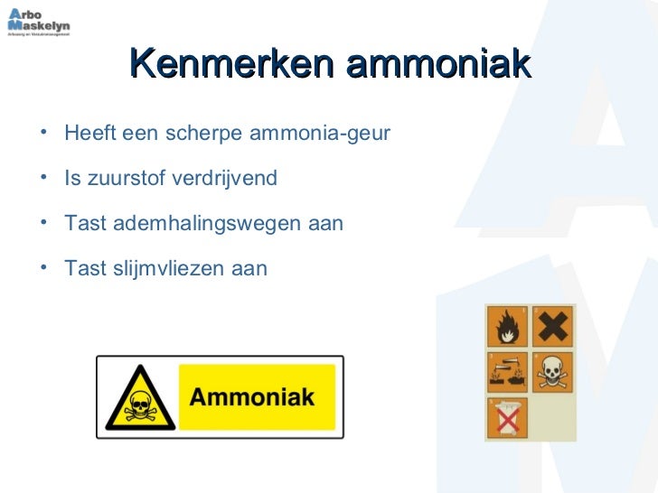 Inleiding. Ammoniak is een kleurloos gas en heeft in hoge concentraties een prikkelende geur. Eén molecuul ammoniak bestaat uit drie atomen waterstof en één atoom stikstof en wordt aangeduid met de formule NH3. Ammoniak wordt in grote hoeveelheden overal ter wereld geproduceerd.