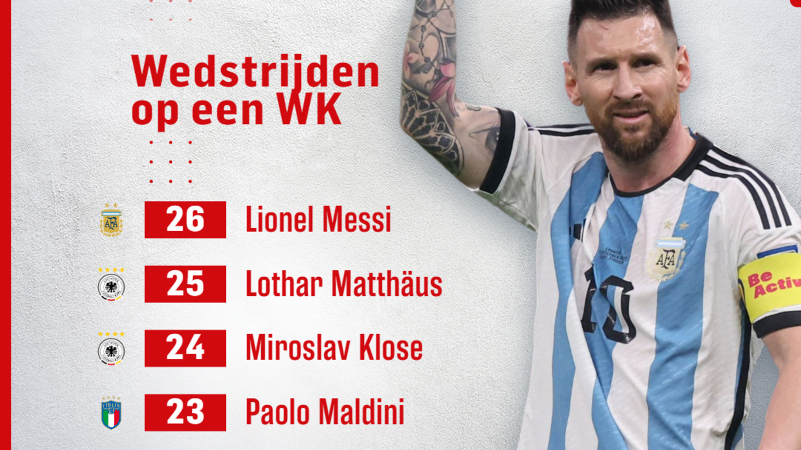 Mister WK Lionel Messi passeert Pelé, Matthäus en Maldini maar overtreft vooral zichzelf Foto